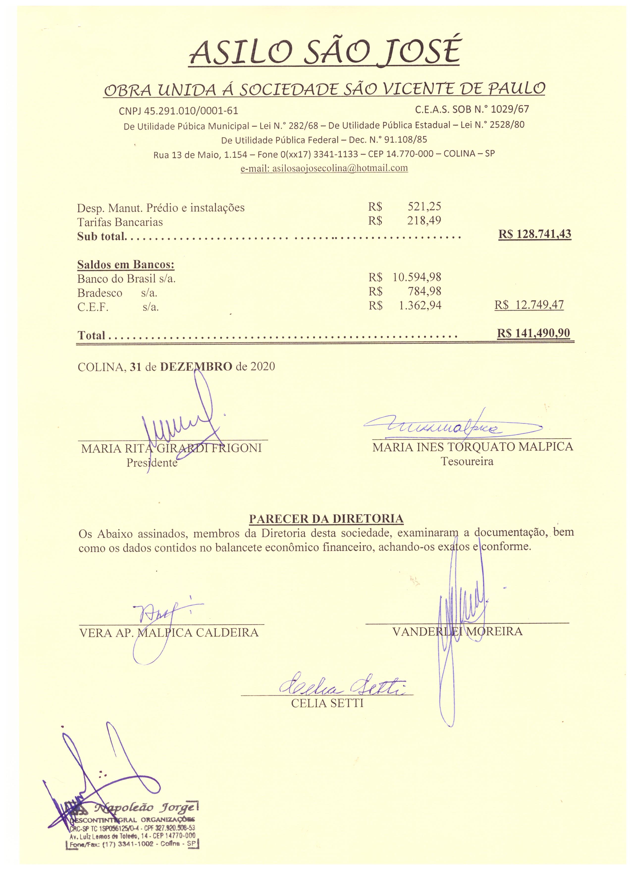 Confira abaixo os arquivos de transparência pública do Asilo: